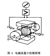 具有導(dǎo)電性的被測介質(zhì)液態(tài)以一定的速度流動(dòng)時(shí),則在與流動(dòng)方向垂直的方向上產(chǎn)生與流量成比例的感應(yīng)電勢 E,其值為
