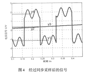 對于基線零點漂移,“正負差值法”是比較有效便捷的選擇,它不需要直接消除信號中的基線零點漂移,而是通過算法上去掉基線零點漂移對測量結果的影響。該系統(tǒng)中,激磁信號的頻率為6.25Hz,由于所測量的液體流速不會有明顯的突變,所以在信號的一個周期0.16s內,可以采用一個波峰減去波谷的均值來表示此時的流量信號,也即如圖3中|y4-y1|其中y4是從nT+T/4到nT+T/2采樣結果的算術平均值,y1是從到(n+1)T進行采樣結果的算術平均值。但是由于斜率零點漂移的存在,會出現(xiàn)如圖3中|y3-y2|的誤差,所以需要利用式(15)的結果對該誤差進行修正,修正后的結果也就是此時管道中液體感應出的電動勢為: