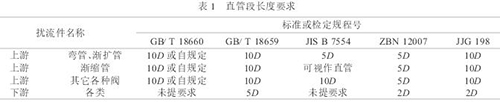 (1)對安裝管路的要求.實(shí)際工程上,電極平面處的流速分布已同初校時有較大的差別,傳感器上游管道連接件的配置是引起特殊的流速分布的因素之一,使用中就有可能出現(xiàn)量值偏移.對傳感器前后直管段的要求是保證流速以中心軸為對稱分布,獲得儀表測量精確度的必要條件之一,國標(biāo)GB/T18659-2002等列舉了對漸縮管、上游閥、圓弧彎頭*小直管段長度的要求(見表1).
