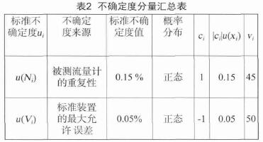 輸入量Vi相對不確定度Urei(Vi)不確定度主要來源于氣體流量標(biāo)準(zhǔn)裝置的測量誤差,其不確定度采用B類方法評定。