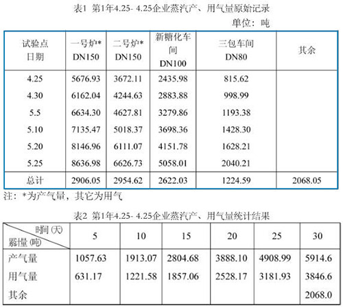 (1)綜上數據,圖表可看出氮氣流量計測量飽和蒸汽,流量數據顯示清晰,穩(wěn)定可靠,其產、用氣量隨著流量計的完善,其差值變小了,也即使用部門越多,其消耗越少。