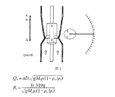 如圖1所示,相對(duì)應(yīng)測(cè)量介質(zhì)的某**量,磁性浮子在測(cè)量管中對(duì)應(yīng)一個(gè)浮子位置,這個(gè)浮子位置通過(guò)指示器中的經(jīng)過(guò)精密充磁的磁禍合系統(tǒng)帶動(dòng)指針,由刻度盤(pán)和指針讀出相應(yīng)的流量值。
