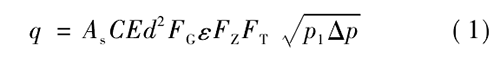 式中,、為標(biāo)準(zhǔn)狀態(tài)下天然氣體積流量,m; /s;  A,為秒計量系數(shù),視采用計量單位而定,此處A=311 794 x 10 -6;  C為流出系數(shù);E為漸近速度系數(shù);d為孔板直徑,mm;  F}為相對密度系數(shù);。為可膨脹系數(shù);F:為超壓縮因子;F:為流動溫度系數(shù);P,為孔板上游側(cè)取壓孔氣流絕對靜壓,Pa;0P為氣流流經(jīng)孔板時產(chǎn)生的壓差,Pao