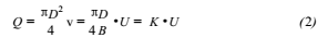 式(1)說明,導體在磁場內(nèi)作切割磁力線運動,導體兩端產(chǎn)生的感應電動勢的大小與磁感應強度B成正比,與導體的長度D成正比,與導體運動的速度v成正比。由式(2)可知液體的體積流量與感應電動勢成正比,這就是生活廢水流量計的設計原理。