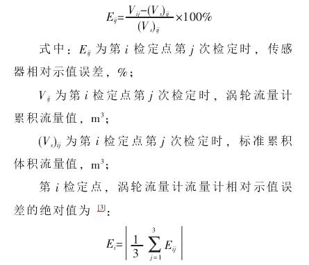 實(shí)驗(yàn)中每個(gè)流量點(diǎn)均進(jìn)行3次測量,(j=1,2,3),3次測量的平均儀表系數(shù)作為此流量點(diǎn)的儀表系數(shù)Ki(i=1,2,3,4,5),各流量點(diǎn)儀表系數(shù)*小值與*大值的平均值,作為傳感器的儀表系數(shù)。