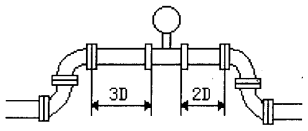 再將兩臺口徑為φ50mm和φ40mm鍋爐蒸汽流量計配裝整流器后,分別安裝在φ80mm工以管道上,且儀表上游尉為一個平面內兩個90°彎頭,變徑整流器前端與*二個90°彎頭距離為3倍工藝管內徑長段,進行水標定,工藝圖如圖3,實驗數(shù)據(jù)見表2