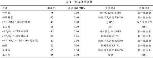 智能型防腐電磁流量計要根據(jù)被測流體的溫度、壓力、速度以及含固顆粒的硬度、含量和粒徑大小來決定測量管內(nèi)襯的材質(zhì)。該濕法磷酸裝置中,智能型防腐電磁流量計測量管襯里材質(zhì)的種類見表 2。
