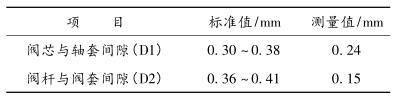 1)由上表可以看出,閥芯與閥套間隙(D1)、閥桿與閥套間隙(D2)明顯小于標(biāo)準(zhǔn)值,導(dǎo)致運(yùn)行時(shí)出現(xiàn)局部卡澀現(xiàn)象。