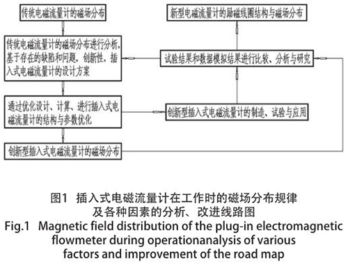 dn80泥漿流量計因其特殊的結構形式,致使其抗干擾能力較弱、準確度偏低以及瞬時流量波動過大等不良現(xiàn)象,但便于安裝、造價低廉、普遍應用于大管道等特點而存在。為了發(fā)揮其優(yōu)勢,消除其不利因素,對其內(nèi)部結構及其相關技術參數(shù)進行優(yōu)化設計,從而使其準確度能夠達到 ±1% FS,使抗干擾能力得到極大地增強。本文主要通過優(yōu)化設計、選擇材料和試驗,使dn80泥漿流量計的穩(wěn)定性和準確度大幅度提高,并提出解決措施,對實際應用具有參考價值。分析與研究程序圖如圖 1 所示。