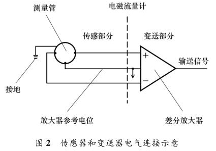 乙醇管道流量計主要由兩部分組成:流量傳感器和信號變送器,如圖 2 所示。傳感器上的勵磁線圈接受變送器傳輸來的勵磁電流產(chǎn)生磁場,輸出感應電動勢信號;信號變送器則將感應電動勢信號轉換為流量信號或模擬量信號送至控制系統(tǒng)。乙醇管道流量計按組成方式分為一體式和分體式。乙醇管道流量計穩(wěn)定工作另外一個重要條件是接地。當流體流動穿過磁場時,以導電流體本身作為參考電位,在測量管一側電極產(chǎn)生正電勢,另一側產(chǎn)生負電勢,形成電勢差。但此電動勢信號一般只有幾毫伏,易受外界干擾。為防止干擾,將參考電位接入大地作為零電位,保證傳感器輸出精確穩(wěn)定的信號。傳感器和轉換器的接地端必須與被測介質同電位,才能構成對稱的輸入輸出回路。