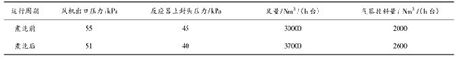 液體渦街流量計(jì)煮洗吹掃后,裝置運(yùn)行期間無(wú)燃爆事故,且裝置運(yùn)行的風(fēng)量明顯提高,系統(tǒng)阻力明顯降低,投料量增加?,F(xiàn)將煮洗前后的運(yùn)行數(shù)據(jù)對(duì)比如下: