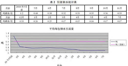 ④通過建立聯(lián)動考核機(jī)制使得員工作業(yè)質(zhì)量得到明顯提升。綜上所述,通過有針對性的改進(jìn)后,引流鋼水量大幅下降 80%,鋼水利用率上升 3%。