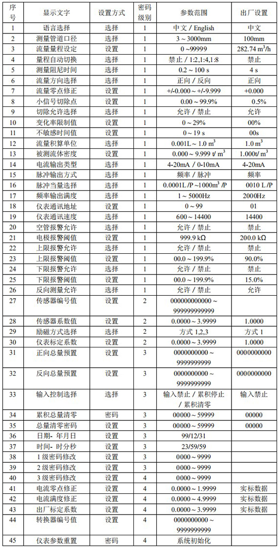 儀表參數(shù)決定儀表的運(yùn)行狀態(tài)、計算方法、輸出方式。正確地選用和設(shè)置儀表參數(shù),可使儀表運(yùn)行在*佳狀態(tài),能得到較高的測量顯示精度和測量輸出精度。