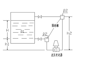 假設(shè)隔離液的重度為ρ2 (ρ2 >ρ1,并且隔離液不能與被測(cè)液體發(fā)生互溶)。