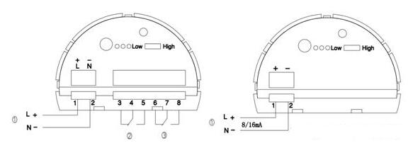 ①:電源輸入端①:電源輸入端/8/16mA信號輸出端