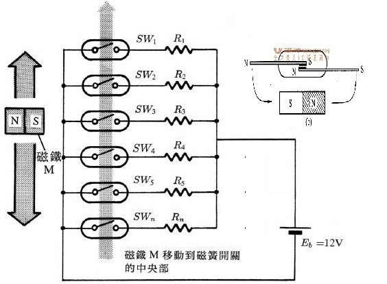 磁變送器(干簧管變送器):與磁開關(guān)的原理相似,它是捆綁在浮筒外面。當(dāng)浮筒里面的浮子隨著液位變化時,上下移動,浮子中的磁鋼所在的位置將改變干簧管中磁開關(guān)的狀態(tài)(閉合),只有在磁鋼作用范圍內(nèi)的干簧管閉合,其它都處于開路狀態(tài),從而改變回路的電阻值,或者說是改變了輸出回路的阻值。浮子的位置相當(dāng)與電位器的滑動點,隨著浮子的位置變化,引起上下電阻的抽頭(上下電阻值)變化,液位越低,電阻值越大,越高電阻越?。ǔ鼍€在頂部)。由于回路是恒(定電)流,再通過電流/電壓轉(zhuǎn)換,進(jìn)而可以轉(zhuǎn)化為4~20mA/HART 等信號。液位變化,液位旁邊的磁開關(guān)閉合,電阻值變化,輸出電壓隨之變化。