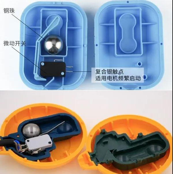 當浮球在液體浮力的作用下隨液位的上升或下降到與水平呈一定角度時,浮球體內(nèi)的驅(qū)動機構(gòu)——驅(qū)動大容量微動開關(guān),從而輸出開(ON)或關(guān)(OFF)的信號,共報警提示或遠程控制使用:
