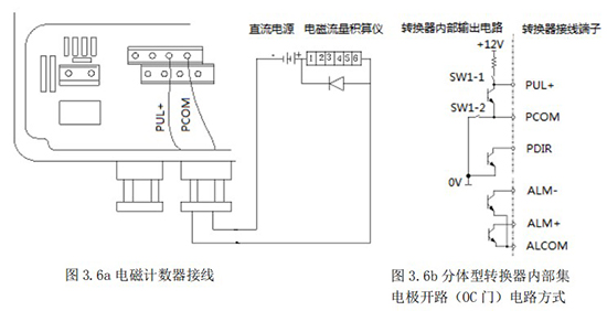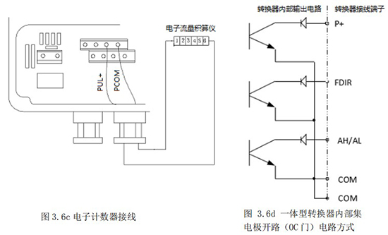 1.4.5 頻率(脈沖)、上下限報(bào)警、流向標(biāo)示等輸出均為集電極開(kāi)路的電平輸出信號(hào)。