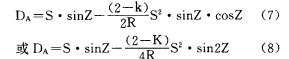應用(4)或(5)式,天頂距Z無需再加球氣差f(地球曲率和大氣折光差)改正。或Dm=S·sin(Z-f)=S·cos(a+f)(6)